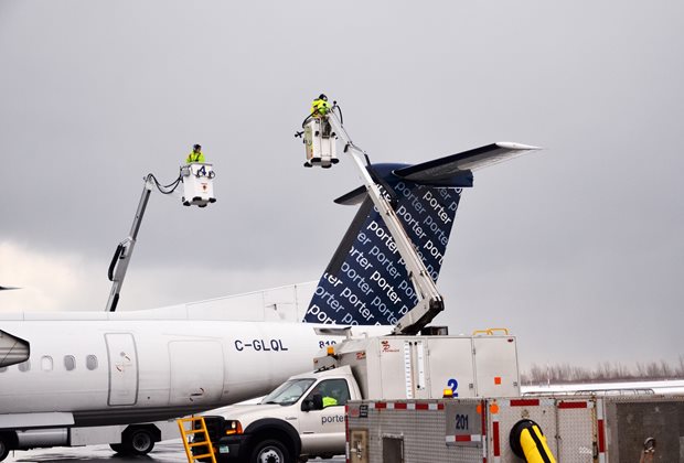 De-icing at Billy Bishop Toronto City Airport