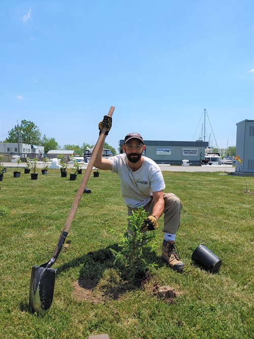 Our very own Outer Harbour Marina was recently the happy recipient of a tree and shrub planting initiative coordinated through a partnership between the Toronto Port Authority, the Toronto and Region Conservation Authority (TRCA) and Grand Trees – an organization founded by grandparents concerned about the effect of previous generations’ neglect of the environment on their children and grandchildren.