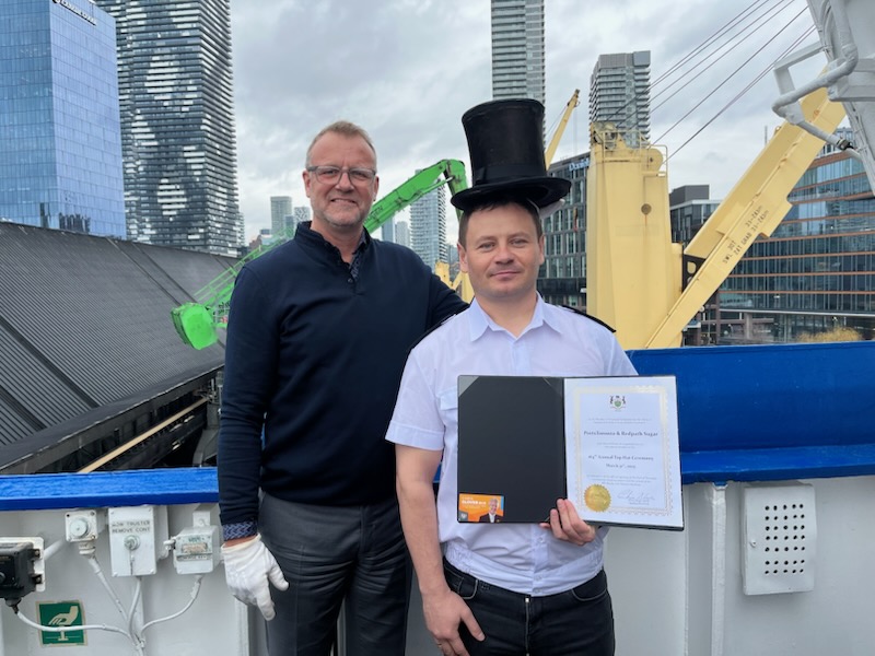 In keeping with past ceremonies, the ship’s captain, Sergei Soldatkin, was crowned with the top hat. The Toronto Port Authority CEO RJ Steenstra presided over the ceremony, which commemorated the history and importance of our port to Toronto’s economy.