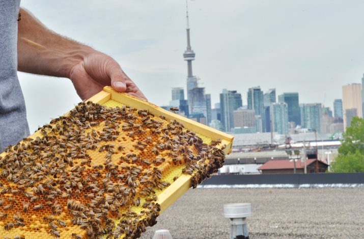Since 2007, up to 35 per cent of Ontario’s bee colonies have died annually – a significant increase compared to 10 per cent prior to this time. It may come as a surprise to some that cities provide a thriving environment for bees as there are strict anti-pesticide laws, ample untapped floral diversity and largely unused rooftop space. The benefits of urban beekeeping include local honey and garden pollination throughout the city.