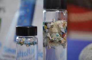 Tiny debris, including microplastics – items smaller than five-millimetres – are by far the most common items (by count) collected by Seabins. Also included in the 18 kg of anthropogenic debris we diverted were slightly larger items, including hundreds to thousands of pieces of hard plastic fragments broken off from larger plastic items, plastic packaging waste including food wrappers, cigarette butts, bottle caps, cigar tips and plastic straws. The small plastic debris included pre-industrial plastic pellets or “nurdles”, and plastic foam, film and fragments.